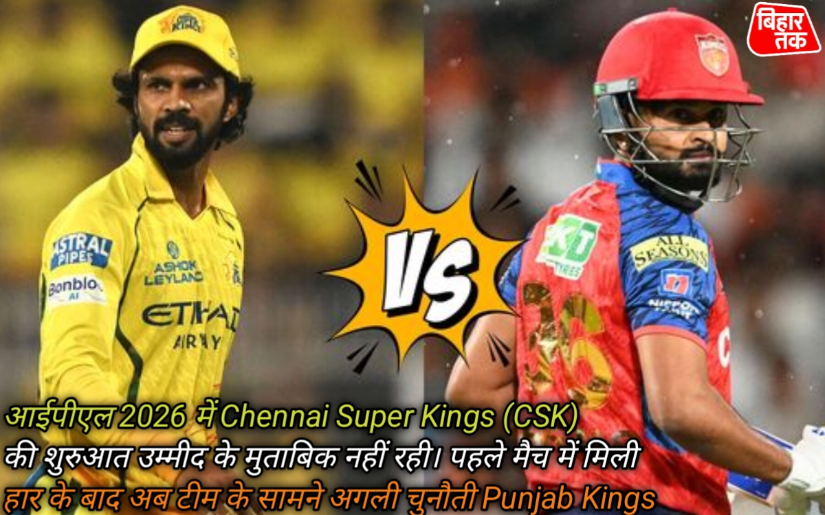आईपीएल 2026 में Chennai Super Kings (CSK) की शुरुआत उम्मीद के मुताबिक नहीं रही। पहले मैच में मिली हार के बाद अब टीम के सामने अगली चुनौती Punjab Kings (PBKS) के खिलाफ वापसी करने की है। यह मुकाबला चेन्नई के लिए सिर्फ एक मैच नहीं बल्कि आत्मविश्वास वापस पाने का मौका भी है।